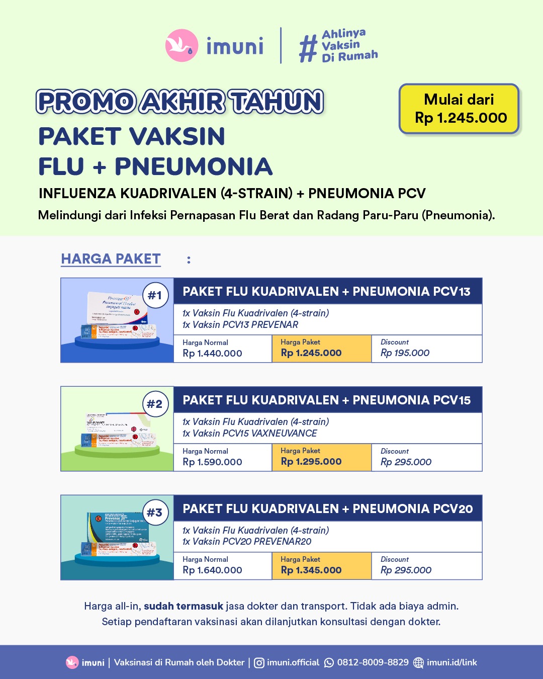 Harga all-in, sudah termasuk jasa dokter dan transport. Tidak ada biaya admin.