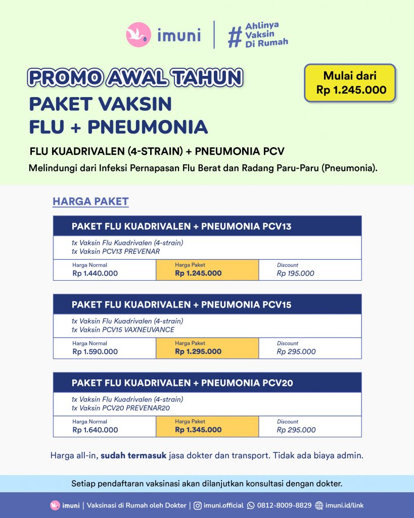 Vaksin Influenza (flu) kuadrivalen 4-strain dan Pneumonia