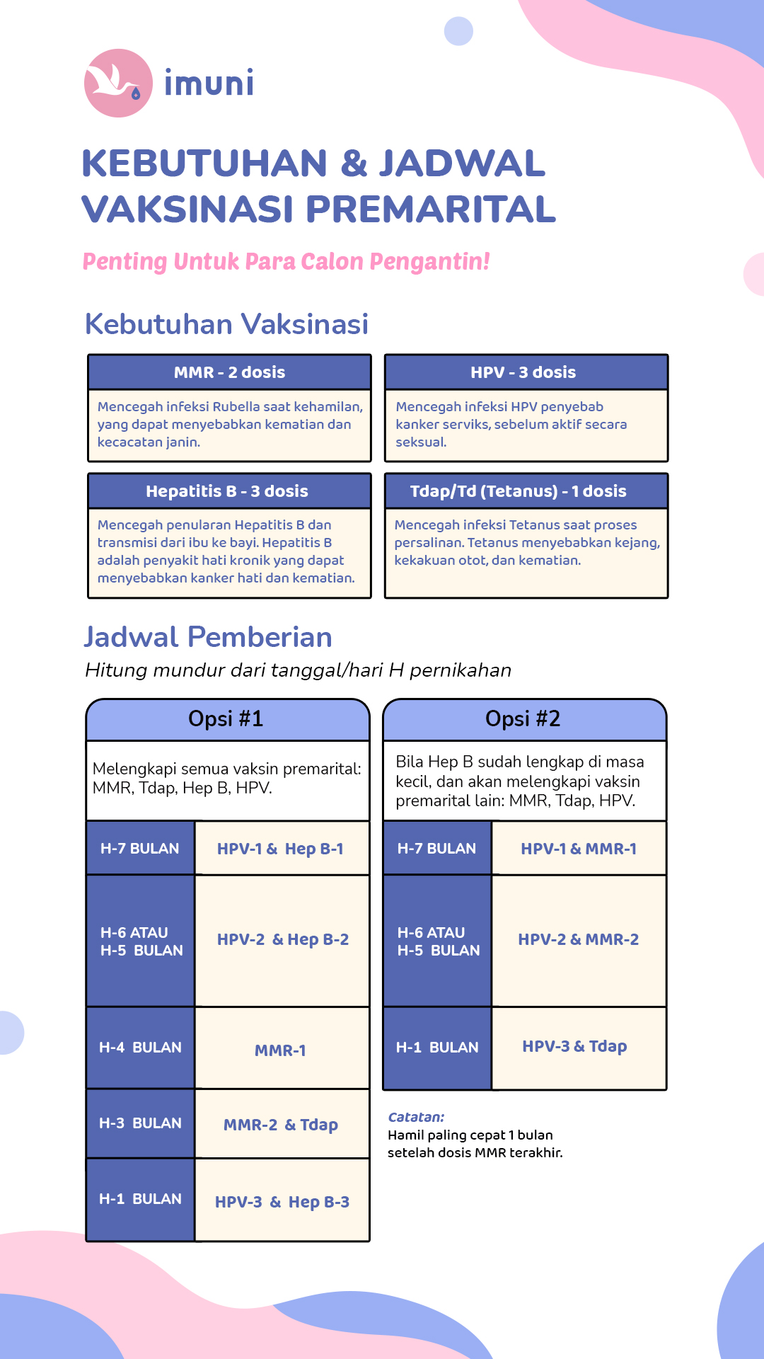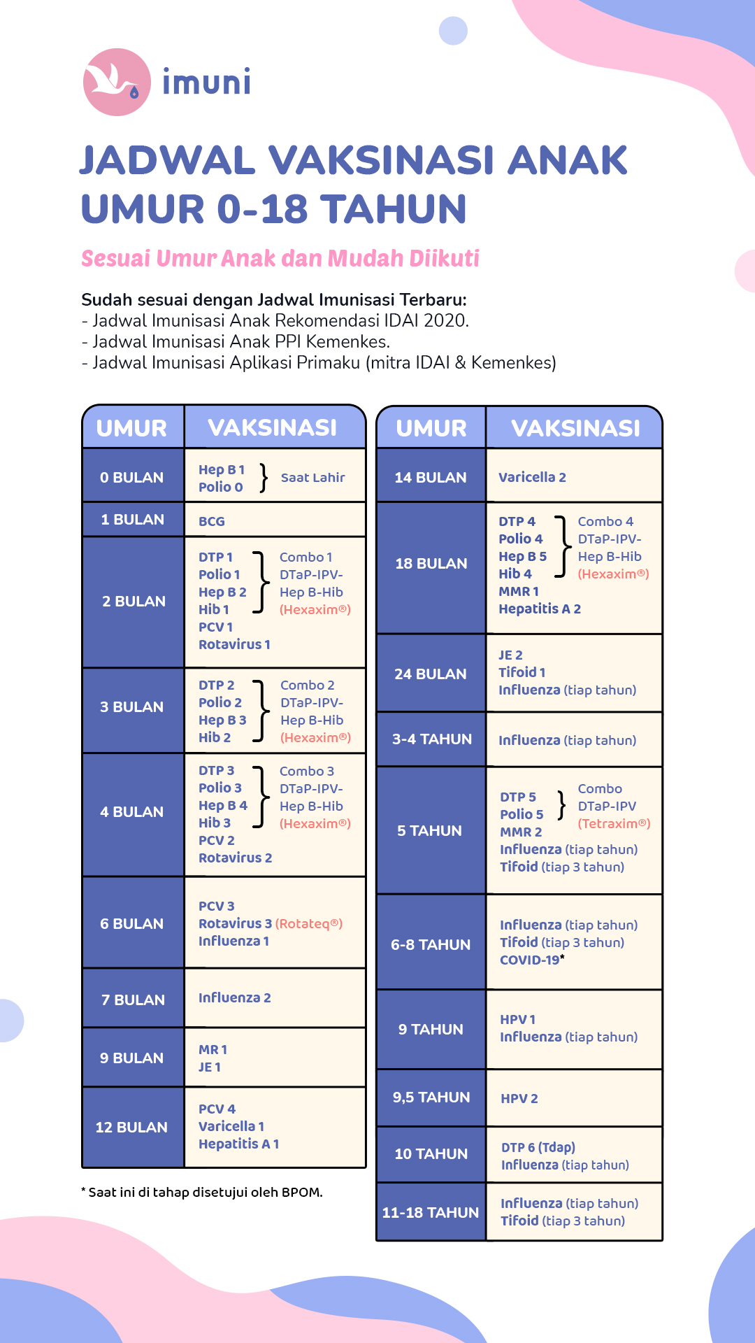 Jadwal vaksinasi lengkap dapat dilihat di: imuni.id/imuni-vaksinasi/jadwal-vaksinasi-imuni/
